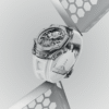 The result of the continued fruitful collaboration between Hublot and Samuel Ross is a new product for 2023, the Hublot Big Bang Tourbillon SRÂ_A by Samuel Ross watch, Limited Edition, 44 mm, Reference 428.NX.0101.RX.SRA23, combining sacred geometric shapes, living materials and precision technology. Sophisticated limited edition men’s watch from Hublot has an industrial look thanks to the Shiny Microblasted Titanium used in every detail. You can wear this real work of art. Polished, brushed, forged and perforated titanium details give this watch a streamlined, elegant silhouette that evokes a sense of movement and innovation. This model features a sapphire skeletonized dial with large round luminous hour markers at 2, 3, 4 and 8, 9, 10 o’clock. Along the perimeter of the dial is an inner bezel with a minute track and silver Arabic numerals in 5-minute increments. Silver large rounded skeletonized minute and hour hands with luminous fill ensure perfect legibility. At the “6 o’clock†position, the manufacturer has placed a tourbillon, symmetrically to which at the “12†position there is a micro-rotor with an engraved Hublot logo. The dial closed by a Scratch-resistant Sapphire Crystal with Anti-reflective Treatment. The case back is also made of sapphire crystal, immediately behind, which is a special titanium plate, decorated with a grid of hexagonal perforations running across the dial, which provides additional light and makes the watch even lighter. She occupies the entire back cover and follows the skeletonized structure that forms the integrated lugs and sides. To highlight the overall gray monochrome look, the titanium crown is covered in gray rubber. The model decorates a fixed titanium bezel, secured with 6 instantly recognizable Hublots signature titanium “H†screws. The watch is Hublot Caliber HUB6035 Manufacture Automatic Tourbillon Movement, contains 26 Jewels and has an approximate power reserve of 72 hours. They are presented on an elegant and comfortable vivid green smooth rubber strap, with a Titanium Deployant Buckle clasp. Also included are black and white straps, which can be easily replaced in one click. The water resistance is up to 30m/100ft (3ATM).