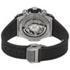 Hublot Big Bang Unico Titanium ceramic, 42mm watch. Titanium case, satin/brushed finished with fine polished corners, Reference 441.NM.1170.RX. This model has Matte Black Skeleton dial with applied applique style alternating Arabic numerals and index hour markers with luminous fill. Black composite resin bezel lug and case band. Black dial flange with a minute/seconds track. Arabic numeral minute markers at 5-minute interval. Bold silver-tone brushed finished hands with luminous fill (minutes and hours hands semi-skeleton). Small running seconds sub-dial hand located at the 9 o’clock position. Date window located between the 3 o’clock positions. Screw-down crown. The dial closed by a Scratch-resistant Sapphire Crystal with Anti-reflective Treatment. Of Sapphire Crystal made transparent case back. Chronograph stopwatch functions: column wheel chronograph mechanism; features a Flyback function, which allows instant restarting of the chronograph with a single push of the button; large central seconds counter with the “H” logo as a counter-weight; 60-minute counter sub-dial at 3 o’clock. The watch is equipped fixed satin-finished and polished Black Ceramic bezel, secured 6 immediately recognizable Hublots signature “H” screws style of Titanium. The watch is Hublot Caliber HUB 1280 UNICO Manufacture Self-winding Chronograph Flyback Movement with Column Wheel automatic movement, contains 43 Jewels and has an approximate power reserve of 72 hours. This model presented on a Black Lined Rubber Strap with Titanium Deployant Buckle Clasp. The water resistance is up to 100m/330ft (10 ATM).