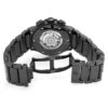 Hublot Classic Fusion Aerofusion Black Magic Bracelet 45mm watch. Polished black ceramic case with brushed finished top and bottom center links between the lugs, Reference 528.CM.0170.CM. This model has Transparent sapphire crystal main dial with applied polished finish Stainless Steel index hour markers. Black inner bezel flange on the perimeter of the dial with fine printed minute/seconds track. Polished finished stainless steel hands. Small-seconds sub-dial located at the 3 o’clock position. Chronograph/Stopwatch function: large central seconds counter with the “H” logo as a counter-weight; 30-minute sub-dial counter located at the 9 o’clock position. Polished black ceramic chronograph buttons. Date disc with black plated skeletonized date numbers, white background located at the 6 o’clock position to indicate the current date. Polished black ceramic crown with the Hublot logo. The dial closed by a Scratch-resistant Sapphire Crystal with Anti-reflective Treatment. Of Sapphire Crystal made transparent case back. The watch is equipped fixed polished black ceramic bezel with brushed finished top and polished finished beveled edges, secured with 6 polished “H” style Titanium screws. Black composite resin “bezel lug” sandwiched between the bezel and case. The watch is self-winding mechanical Hublot Caliber HUB1155, contains 60 Jewels and has an approximate power reserve of 42 hours. This model presented on a Polished and Satin-finished Black Ceramic Bracelet with Black-plated Titanium Deployant Buckle Clasp. The water resistance is up to 50m/150ft (5 ATM).