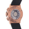 Hublot Classic Fusion Chronograph 18K King Gold 45mm watch. Polished 18K King Gold case with brushed finished top and bottom center links between the lugs, Reference 521.OX.1181.LR. This model has Flat Matte Black dial with polished 18K King Gold hands. Applied brushed finish 18K King Gold “applique” style index hour markers. Minute markers around the outer rim. Small-seconds sub-dial located at the 3 o’clock position. Chronograph/Stopwatch function: large central seconds counter with the “H” logo as a counter-weight; 30-minute sub-dial counter located at the 9 o’clock position. Polished 18K King Gold chronograph buttons. Date window located the 6 o’clock positions. Polished 18K King Gold crown with Pull / Press function. On it, the Hublot logo engraved on it. The dial closed by a Scratch-resistant Sapphire Crystal with Anti-reflective Treatment. Of Sapphire Crystal made transparent case back. The watch is equipped fixed 18K King Gold bezel with brushed finished top and polished finished beveled edges, secured with 6 polished “H” style Titanium screws. Black composite resin “bezel lug” sandwiched between the bezel and case. The watch is self-winding mechanical Hublot Caliber HUB1143, contains 59 Jewels and has an approximate power reserve of 42 hours. This model presented on a Black Alligator/Crocodile Leather Strap with Lining of Black rubber stiched with 18K King Gold and Black PVD Stainless Steel Deployant Buckle Clasp. The water resistance is up to 50m/150ft (5 ATM).