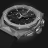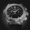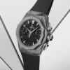 Lovers of art and extremely precise geometry received a new result of Hublots collaboration with the famous French artist Richard Orlinkski, which was the new 2023 Hublot Classic Fusion Chronograph Orlinkski Titanium, 41 mm, microblasted and polished Titanium, Reference 549.NI.1270.RX.ORL23. Despite the exquisite geometric design of the case, the watch has a strict polished black dial, which maintains its high readability. The faceted silver Rhodium plated hour and minute hands and Rhodium plated hour markers give the watch a unique and attractive appearance. The watch has small seconds dial located at the 3 o’clock position. The chronograph/stopwatch function includes a large, elegant central seconds hand with the H logo as a counterweight, and a 30-minute counter located at 9 o’clock. Polished titanium pushers operate it at 2 and 4 o’clock positions. Date window located the 6 o’clock positions. Helps you manage your watch polished titanium crown with the Hublot logo engraved with contoured grooves for improved grip. The dial closed by a Scratch-resistant Sapphire Crystal with Anti-reflective Treatment. The case back of the watch is also made of sapphire crystal, allowing you to observe the fantastic work of the watch movement. The model decorates a fixed dodecagonal Orlinski bezel in Microblasted and Polished Titanium, secured with six of Hublots’ signature titanium “H” screws. The watch’s flawless operation is ensured by the HUB1153 Self-winding Chronograph Movement, which contains 59 jewels and has an approximate power reserve of 42 hours. This model is presented on an elegant and comfortable Black Smooth Rubber Straps with Stainless Steel Deployant Buckle Clasp. The water resistance is up to 50m/65ft (5 ATM).