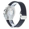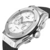 Hublot Classic Fusion Chronograph Titanium Opalin 45mm watch. Polished titanium case with brushed finished top and bottom center links between the lugs, Reference 521.NX.2611.LR. This model has Matte silver “Opaline” main dial with a contrasting metallic silvered sub-dials. Polished, rhodium-plated hands indicate the time. Applied brushed finish Stainless Steel “applique” style index hour markers. Minute markers around the outer rim. Small-seconds sub-dial located at the 3 o’clock position. Chronograph/Stopwatch function: large central seconds counter with the “H” logo as a counter-weight; 30-minute sub-dial counter located at the 9 o’clock position. Polished titanium chronograph buttons. Date window located the 6 o’clock positions. Polished titanium crown with Pull / Press function. On it, the Hublot logo engraved on it. The dial closed by a Scratch-resistant Sapphire Crystal with Anti-reflective Treatment. Of Sapphire Crystal made transparent case back. The watch is equipped fixed titanium bezel with brushed finished top and polished finished beveled edges, secured with 6 polished “H” style Titanium screws. Black composite resin “bezel lug” sandwiched between the bezel and case. The watch is self-winding mechanical Hublot Caliber HUB1143, contains 59 Jewels and has an approximate power reserve of 42 hours. This model presented on a Black Alligator/Crocodile Leather Strap with Lining of Black rubber stiched with Stainless Steel Deployant Buckle Clasp. The water resistance is up to 50m/150ft (5 ATM).