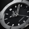 - Polished titanium crown engraved with the Hublot logo.