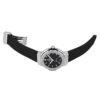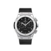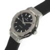 Hublot Classic Fusion Chronograph Titanium 38mm watch. Polished titanium case with brushed finished top and bottom center links between the lugs, Reference 565.NX.1171.RX. This model has Flat Matte Black dial with a polished Rhodium plated hands. Applied brushed finished Stainless Steel “applique” style index hour markers. Date window located the 3 o’clock positions. Polished titanium crown engraved with the Hublot logo. The dial closed by a Scratch-resistant Sapphire Crystal with Anti-reflective Treatment. Of Sapphire Crystal made transparent case back. The watch is equipped fixed titanium bezel with brushed finished top and polished finished beveled edges, secured with 6 polished “H” style Titanium screws. Black composite resin “bezel lug” sandwiched between the bezel and case. The watch is self-winding mechanical Hublot Caliber HUB1110, contains 21 Jewels and has an approximate power reserve of 42 hours. This model presented on a Black Lined Rubber Straps with Stainless Steel Deployant Buckle Clasp. The water resistance is up to 50m/150ft (5 ATM).