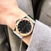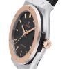 • Bracelet Material: Black rubber strap with a stiched Black Alligator/Crocodile Leather