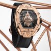 - Movement: HUB4700 self-winding skeletonized chronograph movement