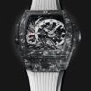 Unworn Hublot Spirit of Big Bang TOURBILLON CARBON WHITE 645.QW.2012.RW. 42 mm, Sapphire dial, Carbon Fiber with White Micro-glass Fibers case, Sapphire with Anti-reflective Treatment crystal, Carbon Fiber with White Micro-glass Fibers bezel, HUB6020 calibre, Manufacture Manual-winding Power Reserve Skeleton Tourbillon Movement, 115 Hours power reserve, Black and White Structured Lined Rubber Straps with Black Ceramic and Black-plated Titanium Deployant Buckle Clasp. Water resistant to 30 m.