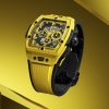 - Bracelet Material: Yellow and Black Structured Lined Rubber Strap