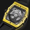 - Movement: HUB4700 self-winding skeletonized chronograph movement