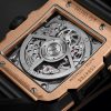 Unworn Hublot Square Bang UNICO KING GOLD CERAMIC 821.OM.0180.RX. 42 mm, Sapphire Crystal dial, Satin-finished and Polished 18K King Gold case, Sapphire with Anti-reflective Treatment crystal, Satin-finished and Polished Black Ceramic with 6 H-shaped Titanium Screws bezel, HUB1280 UNICO calibre, Manufacture Self-winding Chronograph Flyback Movement with Column Wheel, 72 Hours power reserve, Black Structured Rubber Straps with 18K King Gold and Black-plated Titanium Deployant Buckle Clasp. Water resistant to 100 m.