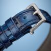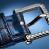 - Bracelet Material: Ocean blue patinated Alligator Leather with square scales, hand-stitched