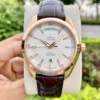 The bezel is mounted on a 41.5 mm 18K red gold case on a brown leather strap. This certified chronometer is powered by the OMEGA Co-Axial calibre 8612 which can be seen through the transparent caseback.