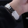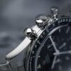 The 39.70 mm case is in stainless steel and is inspired by the same 3rd generation style worn during America’s first spacewalk in 1965. There is also a bezel ring in polished black ceramic [ZrO2] with the tachymeter scale in white enamel.