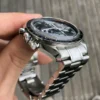 This OMEGA Speedmaster Professional “Moonwatch” features a black dial covered by a hesalite crystal and graced by a small seconds sub-dial, 30-minute recorder and 12-hour recorder along with a central chronograph hand. The black bezel, with its tachymetric scale, is mounted on a 42 mm stainless steel case and presented on a matching bracelet.