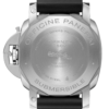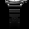 Unworn Men’s Watch Panerai Submersible – 42mm, of AISI 316L brushed steel case, Reference PAM00973. The model has Black dial with luminous Index hour markers at 6 and 12 o’clock positions and rest of the hour markers in the form of large dots with luminescent filling. This watch is bold the iconic large silver-tone skeleton sword-shaped different hands of polished steel with bold blue luminescent fill. Date window located 3 o’clock position. Also watch has one-small second subdial at 9 o’clock with luminous blued steel hand, with marked in bold luminous dots and indexes across every 15 minutes. This Officine Panerai signature element speaks innovation and seamless function. The dial closed by a Scratch-resistant Sapphire Crystal. The watch has Panerai’s (protected as a trademark) instantly recognizable crown protector and screws down the crown of polished steel with a ribbed edge for a comfortable grip. They have case shape Cushion and solid case back of brushed steel made. The watch is equipped anti-clockwise rotating bezel of brushed steel with a graduated 15-minute scale. It also has raised points at 5-minute intervals, marked separately for 15, 30 and 45 minutes, and a large luminous point at the origin. The Model comes with Panerai Caliber P.900 automatic movement, containing 23 Jewels and has a power reserve of approximately 72 hours. The watch presented on a black rubber strap secured by a Tang buckle. The water resistance is up to 300m/1000ft.