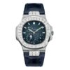 Patek Philippe Aquanaut 5167/1000G-010 Measuring 40mm in diameter by 8.1mm thick, the case of the watch is made of 18k white gold and is set with a whopping 101 baguette diamonds. in-house caliber 324 SC. This self-winding time and date movement has a 45-hour power reserve and includes some of Patek Philippe’s advanced research components, including a four-spoke Gyromax balance wheel and a Spiromax balance.  bezel is set with 40 brilliant-cut diamonds. Oyster-Flex bracelet.