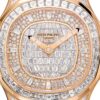 A polished 18k Rose Gold screw-down crown with a ribbed edge for a comfortable grip and the Patek Philippe logo is the finishing touch to the perfect picture. The dial is covered with a scratch-resistant sapphire crystal. A screw-down Sapphire Crystal case back, also made allows you to see the magical workings of the movement. The elegant highlight of this model is the fixed sparkling 18k Rose Gold bezel and lugs set with 48 baguette diamonds (~3.68 ct) flawless. The polishing on the sides impresses with classic precision. It also looks amazing because at first glance, it looks rounded, but on closer inspection, you can see the crisp edges playing with the light. The model is equipped with a Patek Philippe Caliber 324, with a self-winding mechanical movement containing 29 Jewels, with a power reserve of 45 hours. This beautiful sport chic watch is presented on a pearly beige “Tropical†composite strap that continues the visual harmony of the design. The strap are fastens with Patek Philippe’s patented polished 18k Rose Gold folding clasp, and engraved with the Calatrava cross set with 10 baguette diamonds (~0.34 ct). Opening the clasp reveals the engraved Patek Philippe logo with the word GENEVE. Water resistant up to 30m/99ft (3 ATM).