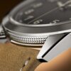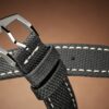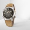 Luxury Patek Philippe Calatrava polished 18k White Gold, 40mm, Reference 5226G-001 wears extremely sporty, and with a slightly military look. The sides of the case are adorning the flanks with a Clous de Paris hobnail pattern typical of the Manufacture and the dial is decorated in a vintage style inspired by old cameras. This model has dial is textured charcoal gray with a black gradient rim. On him looks spectacular overhead Arabic numerals with beige luminescent coating, vintage syringe hands polished 18k White Gold hands and a gradient black minute track with Arabic numerals marking every 5-minute interval that adds instrumental precision to the overall look. In addition, this model is equipped with a spectacular second hand and an aperture-type date at the 3 o’clock position, and stop-seconds mechanism. A polished 18k White Gold crown with a ribbed edge for easy grip and the Patek Philippe logo is located on the right side of the case. The dial closed by a Scratch-resistant Sapphire Crystal and sapphire-crystal case back which allows of the case, allows you to see the magical work of the movement. The watch features an 18K White Gold fixed polished smooth bezel. This model has caliber Patek Philippe Caliber 26‑330 S C, a self-winding mechanical movement containing 30 precious stones, with a power reserve of min. 35 hours – max. 45 hours. This new reference is teamed with two interchangeable straps: one in beige calfskin with a nubuck finish —fitted on the watch— and the other in black calfskin with an embossed fabric motif and beige topstitching that is included with the watch. The straps come with 18k White Gold Prong buckles. The water resistance is up to 30m/100ft (3 ATM).