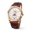 Unworn Luxury Patek Philippe Complication watch. The 18k Rose Gold Annual Calendar / Moonphases, 38,5mm, Reference 5396R-011. The model has silvery opaline dial the highlight of which are with is beautifully finished with 18k Rose Gold applied index hour markers and hands and the Patek Philippe logo at 12 o’clock. On the outer edge of the dial there is a minute scale consisting of 18k Rose Gold dots. The patented annual calendar is ingenious mechanism. Сonsists date in aperture located at 6 o’clock along with the day of the week and the month in apertures at 12 o’clock. Besides there is a 24-hour sub-dial at 6 o’clock and, perhaps the standout feature of this dial, a Moon phase within that. Polished 18k Rose Gold crown that with ribbed edge for comfortable grip and logo Patek Philippe are located on the right side of the case. The dial closed by a Scratch-resistant Sapphire Crystal and Scratch-resistant Sapphire Crystal case back. The watch is fixed 18k Rose Gold bezel. The watch Patek Philippe Caliber 324 S QA LU 24H/303 has Self-winding mechanical movement, containing 34 Jewels, and power reserve min. 35 hours, max. 45 hours. This model presented on shiny dark brown alligator strap secured by an 18k Rose Gold fold-over clasp. The water resistance is up to 30m/100ft (3 ATM).