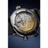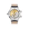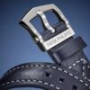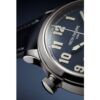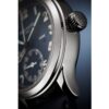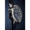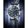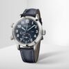 Luxury watch Patek Philippe Complication Calatrava Pilot Travel Time 37,5mm and Reference 7234G-001. This model was the continuation of a series of historical aviation watches produced by the manufactory in the 1930s. It features an easy-to-read dark blue aviator-style dial. Readability is enhanced by blued 18k White Gold wand hands with Super-LumiNova, and large 18k White Gold applied Arabic numerals with Super-LumiNova. The skeletonized GMT hand subtly indicates a second time zone: it is positioned behind the main hour hand and is thus hidden when local and home time are the same. There are separate day and night indicators for each time zone (local at 9 o’clock and home at 3 o’clock), as well as an additional date dial at 6 o’clock that displays the date in three-day increments to avoid clutter. In addition, on outer of the dial edge placed there is a minute scale. Polished Screw-down 18k White Gold crown that with ribbed edge for comfortable grip and logo Patek Philippe are located on the right side of the case. And the time zone buttons (at 8 o’clock to move the clock forward and at 10 o’clock to return it) are equipped with a patented safety catch to prevent unintentional adjustments and are located on the left side of the case without detracting from the sporty style, despite the compact size. The dial closed by a Scratch-resistant Sapphire Crystal and Scratch-resistant Sapphire Crystal case back, which allows of the case, allows you to see the magical work of the movement. The watch is equipped slightly inclined fixed polished 18k White Gold by a bezel. The watch Patek Philippe Caliber 26‑330 S C FUS has Self-winding mechanical movement, containing 29 Jewels, and power reserve min. 35 hours – max. 45 hours. This watch presented on shiny navy blue (original fitting) Calfskin leather strap hand-stitched and vintage brown (additional strap) strap with 18k White Gold Clevis prong buckles. The water resistance is up to 60m/200ft (6 ATM).