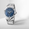 Unworn Luxury Patek Philippe Complication Stainless Steel Annual Calendar, 38mm watch, Reference 4947/1A-001. The model has elegant Blue dial with vertical horizontal satin-finish (“shantung†finish), and luminous 18k White Gold leaf-style hands and graceful 18k White Gold Center sweep second hand. The dial decorate large 18k White Gold hour markers in the form Arabic numeral. A minute scale is applied along its outer edge. The patented annual calendar is ingenious mechanism which displaying three multi-function sub-dials: month display at the 3 o’clock position; day of the week display at the 9 o’clock position; moonphase display at the 6 o’clock position. In addition, below it at the 6 o’clock position, there is a date display in the aperture. All the functions are controlled by the recessed pushers within the caseflanks. Screw-down Stainless Steel crown, that logo Patek Philippe. The dial closed by a Scratch-resistant Sapphire Crystal and Scratch-resistant Sapphire Crystal case back. The watch is polished fixed Stainless Steel bezel. The watch Patek Philippe Caliber 324 S QA LU has Self-winding mechanical movement, containing 34 Jewels, and power reserve min. 35 hours, max. 45 hours. This watch is equipped with a new integrated and entirely polished bracelet featuring five rows of links secured by a Stainless Steel double-Fold-over clasp. The water resistance is up to 30m/100ft (3 ATM).