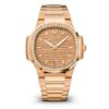 Discover the Patek Philippe Complications 4948G-010, a splendid showcase of luxury and intricate design. Crafted from 18k white gold, this 38mm ladies’ watch embodies sophistication, making it an exquisite addition to any collection. The dial is a stunning Balinese mother-of-pearl, featuring gold applied numerals and hands that exude elegance. A highlight of this timepiece is its annual calendar mechanism, which correctly displays the month, day, and date, and requires adjustment only once a year. This function is beautifully integrated into the design with sub-dials at 12 and 6 o’clock, and a date aperture gracefully set at 6 o’clock. The moon phase display at 6 o’clock adds an artistic touch, enhancing the watch’s allure with its celestial accuracy. Set with 347 diamonds (~2.65 ct.) along the bezel, lugs, and crown, each gem is meticulously placed to maximize brilliance and charm. This detailed gem setting not only emphasizes the watch’s luxurious appeal but also highlights the impeccable craftsmanship of Patek Philippe. The watch is powered by the caliber 324 S QA LU, a self-winding mechanical movement renowned for its precision and reliability, visible through the sapphire-crystal case back. A white gold bracelet complements the case, providing a secure and stylish fit with a fold-over clasp.