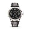 The dials closed by a Scratch-resistant Sapphire Crystal. The watch is fixed 18k White Gold bezels. The power behind the Grandmaster Chime is the Caliber300 GS AL 36-750 QIS FUS IRM offering over 20 functions and has Mechanical manually wound movement, containing 108 Jewels, and a movement power reserve of up to 72 hours and a strikework power reserve of up to 30 hours. This model presented on Shiny navy blue Alligator strap with square scales, hand-stitched, fold-over clasp. Case is humidity and dust protected only (not water-resistant).