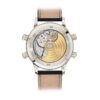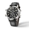 Unworn Luxury Patek Philippe Grand Complication elegant Pilot-style platinum case watch, 42.2mm, Reference 5520P-001. The model has Ebony black sunburst dial with 18k White Gold luminous silver-tone Hands and applied Large luminous polished 18k White Gold Arabic numerals Hour Markers. Minute markers outer rim located around dial. Sub-dial with Date display at 6 o’clock. Alarm time displayed in an aperture at 12 o’clock. Alarm on/off indication in an aperture. Alarm day/night indication in an aperture also at 12 o’clock. The Model also has two time zones: local and home time indication. Day/night indication for local at 9 o’clock and home at 3 o’clock time in apertures. Will not go unnoticed and Sweep seconds hand. The dial closed by a Scratch-resistant Sapphire Crystal and exhibition case back (also accompanied by interchangeable full back). The watch is equipped fixed polished Platinum bezel. The watch Patek Philippe Calibre AL 30-660 S C FUS automatic, containing Jewels 52, power reserve min. 42 hours – max 52 hours. This model presented on black Calfskin Leather strap, hand-stitched, and Platinum Clevis prong buckle. The water resistance is up to 30m/100ft (3 ATM).