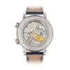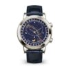 Unworn Luxury Patek Philippe Grand Complication Astronomical watch, 44mm, Platinum, Reference 6102P-001. The dial is a distinctive and unique feature of this model. Three metalized sapphire-crystal discs as well as ellipse framing the portion of the sky visible from Geneva. Look stylish silver-tone Hands skeleton leaf-style shape. An unusual solution to this model are hour markers in the form of red dots and a minute scale with an interval of three minutes. The date mechanism also looks original. All the dates of the month are arranged along the contour of the dial, and a separate red-tipped hand indicates the current date. Polished Platinum correction push-pieces that with ribbed edge for comfortable grip and logo Patek Philippe are located on the right side of the case. The dial closed by a Scratch-resistant Sapphire Crystal and Scratch-resistant Sapphire Crystal case back. The watch is equipped fixed polished Platinum bezel. The watch Patek Philippe Calibre 240 LU CL C Automatic movement, containing 45 Jewels, composed of 315 parts, bitting at 21600 vph, and has a power reserve of approximately 48 hours. This model presented on Shiny navy blue Alligator strap with square scales, hand-stitched, and Platinum fold-over clasp. The water resistance is up to 30m/100ft (3 ATM).