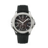 The new luxury watch Patek Philippe Nautilus Date, Moon Phases, 18k White Gold, 40 mm, reference 5712G-001, is the perfect combination of traditional elegance and sporty style with a timeless design. The unmistakable design of the case and bezel is accentuated by a subtle alternation of satin and polished hand-finished finishes. The Slate gray dial with a horizontal relief, which is one of the hallmarks of this model, looks organic. To achieve perfect readability (Patek Philippe requirement for all their watches), the dial features large 18k White Gold hour and minute hands with luminescent coating, as well as applied luminous 18k White Gold indexes. On the outer edge of the dial, a dotted minute scale is applied, which helps to determine the time more accurately. Between 10 and 11 o’clock, the power reserve indicator is quite appropriately placed. At the 7 o’clock position there is an indicator showing the date and phases of the moon. And at the 5 o’clock, position there is a small second subdial. A polished 18k Rose Gold Screw-down crown with a ribbed edge for easy grip and the Patek Philippe logo is completes the watch’s harmony. The dial closed by a Scratch-resistant Sapphire Crystal. Sapphire-crystal too case back, which allows of the case, allows you to see the magical work of the movement. The wide, rounded octagonal 18k White Gold bezel, satin on the front and polished on the sides, provides a wide view of the dial as the horizon is visible through the porthole. What’s more, the side protrusions, also called “lugs”, are inspired by the hinges on these windows. The Model has Patek Philippe Caliber 240 PS IRM C LU, with a self-winding mechanical movement containing 29 Jewels, with a power reserve of min. 38 hours – max. 48 hours. This beautiful sport-chic watch presented on an matte black Alligator/Crocodile leather strap with square scales, hand-stitched also a Patek Philippe patented 18k White Gold Nautilus fold-over clasp. The water resistance is up to 60m/200ft (6 ATM).