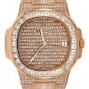 40 mm 18K rose gold case, sapphire-crystal back, light and dark brown gradated dial with gold applied hour markers, caliber 324 S C self-winding movement with date in an aperture and center sweep second hand, approximately 35-45 hours of power reserve, 18K rose gold bracelet, Nautilus fold-over buckle. Water resistant to 120 m.
