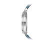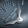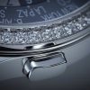 Luxury Patek Philippe Women’s Complication World-Time, 18k White Gold, 36mm and Reference 7130G-016. The masters achieve a rethinking of the World Time classic by decorating this model with an original, modern and elegant Gray-blue color. In addition, its central part is a tribute to the rare art of masters who managed to manually create a guilloche pattern in the form of a “Panier” wicker basket. Look good on dial applied 18k White Gold index hour markers. Moving outward one-step, we find a 24-hour disk divided into day and night zones, distinguished by their color and symbols of the Sun and Moon. The City Disc, showing all 24 time zones at any given time with their respective cities, is also Gray-blue, but the city names are very legible and printed in large white type. To change the time zone, simply press the button at 10 o’clock and all readings will be adjusted at the same time. Strict Dauphine-inspired central hour and minute hands in 18k White Gold add a special touch to the watch. A polished 18k White Gold screw-down crown with a ribbed edge for easy grip and the Patek Philippe logo is located on the right side of the case. The dial closed by a Scratch-resistant Sapphire Crystal and sapphire-crystal case back which allows of the case, allows you to see the magical work of the movement. The watch is equipped Luxury fixed polished 18k White Gold bezel set with 62 diamonds (~0.82 ct.). The watch Patek Philippe Caliber 240 HU Self-winding mechanical movement, containing 33 Jewels, and has a power reserve of min. 48 hours. This model presented on shiny peacock blue Alligator leather with square scales, hand-stitched strap. It zips up 18k White Gold Prong buckle set with 27 diamonds (~0.21 ct.). The water resistance is up to 30m/100ft (3 ATM).