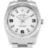 The Rolex Air-King 34mm Dial White Ref.114210 is a really cool watch! It’s not just any watch; it’s a Rolex, which means it’s super fancy and will make anyone look like a million bucks. This watch is not too big and not too small, which is awesome because it can look great on anybody’s wrist. Plus, the white dial is so clean and classy, it can go with any outfit, whether you’re dressed up or just chilling in jeans and a t-shirt.