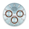 Unworn watch Rolex Cosmograph Daytona 40mm, polished and satin finish Platinum, Ref# 126506-0002. Born for motor racing, the watch combines sporty chic with versatility, making it a must-have for lovers of the fast lanes and the finest cars. The luxurious Rolex Cosmograph Daytona is synonymous with excellent workmanship, first-class technical features and unique looks. Proof of this is the stunning icy blue dial and the crisply readable Chromalight display with a long blue glow and stylish set with diamonds hour markers. Spiral-shaped Chestnut brown counters complement it at 3, 6 and 9 o’clock, which record the hours, minutes and seconds from the start of the race. Elegant sword-shaped hour and minute hands are filled with high-definition luminescent material. The graceful central seconds hand allows you to count time with an accuracy of 1/8 second. All details are made of 18д White gold. A well-readable minute scale is applied along the outer contour of the dial. All this charm is complemented by a ribbed, for a comfortable grip, screw-down crown in Platinum with the Rolex logo, which has a triple Triplock water-resistance system. At the 2 and 4 o’clock positions are the chronograph control buttons made of Platinum. The dial is covered with a scratch-resistant sapphire crystal and a sapphire caseback. The monobloc Cerachrom bezel in high-tech ceramic is the highlight of the model. It is resistant to corrosion, practically does not scratch, is not affected by UV rays. Featuring an exceptionally clear tachymeter scale, thanks to a thin layer of platinum applied to the numerals and graduations using the PVD process, the bezel enhances the functionality of the watch. The model is equipped with a manufacture Rolex Self-winding mechanical movement Calibre 4131, contains 47 jewels and has an approximate power reserve approximately of 72 hours. This spectacular timepiece is presented on an Oyster, three-piece solid links bracelet of Platinum. The Platinum Folding Oysterlock safety clasp with Easylink 5 mm comfort extension link, made using own unique Rolex technologies, guarantees maximum comfort on the wrist. Water resistant up to 100m/330ft (10 ATM).