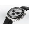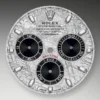 Solid, polished finished, 18kt white gold case with brushed and polished finished center lugs. They have a Meteorite Dial and black sub-dials with polished White Gold hands, hour and minute hands with luminous fill. Applied White Gold rimmed index hour markers with luminous fill. Fine printed minute/seconds and fractions of a second track. Polished 18kt White Gold screw-down crown with Rolex’s patented “Triplock” triple waterproofness system, ensuring that the crown screws down against the Oyster case as securely as a submarine hatch. Screw-down Chrono buttons in polished 18kt White Gold. Chronograph/Stopwatch function: large central seconds counter hand, able to measure time up to 1/8th of a second; 30-minute counter sub-dial located at the 3 o’clock position; 12-hour counter sub-dial located at the 9 o’clock position. Continuous running small seconds hand sub-dial located at the 6 o’clock position. A scratch-resistant sapphire crystal protects the dial. Monobloc middle case, screw-down case back. Fixed Black “Cerachrom” bezel, made of highly durable ceramic that is extremely hard, highly scratch-resistant, has excellent corrosion resistant properties & is unaffected by ultraviolet rays so the color will not fade. White gold filled engraved tachymeter scale on the bezel. The movement is mechanical self-winding, Rolex in-house caliber 4130 with 44 jewels and 72 hours of power reserve running the time only or 66 hours with the chronograph function running. The watch is presented on an Oysterflex bracelet of Flexible metal blades overmoulded with high-performance elastomer with a Folding Oysterlock safety clasp with Easylink 5 mm comfort extension link. The water resistance is up to 100m/330ft. The Watch comes complete with store papers and a Rolex box. Will include 3 years Store Warranty.