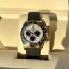 This model features a white dial with snailed counters, gold applique hour markers and hands with a Chromalight display, a highly-legible luminescent material. The central sweep seconds hand allows an accurate reading of 1/8 second, while the two counters on the dial display the lapsed time in hours and minutes. Drivers can accurately map out their track times and tactics without fail.
