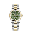 - Dial color: Olive green dial with floral motif and 24 Diamonds in 18k Yellow Gold settings