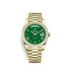 Unworn watch Rolex Day-Date 36, Platinum, 36mm, Ref# 128236-0011. New for 2023 in the Oyster Perpetual Day-Date 36, series are watches with dials made of decorative stones. Thanks to the unique crystallized effects, matrices and veins of aventurine, carnelian and turquoise, and their skillful processing, each dial turns into a unique work of art, being a worthy addition to the rest of the flawless Day-Date details. As always elegant and luxurious Day-Date 36 – is an excellent choice for people who appreciate unique beauty, high style and absolute comfort. The turquoise dial will not leave indifferent any connoisseur of beauty and sophistication. Its index hour markers and Roman numerals VI and IX in 18k White Gold are respectively set with 32 and 24 diamonds, , using a flawless setting and leveling technique that highlights the stones’ subtle brilliance. The classic polished hands made of 18k White Gold look amazing on such a dial, emphasizing the sophistication of the model. The date indicator is traditionally placed at the 3 o’clock position. At the 12 o’clock, position is a semi-circular window showing the day of the week in full, providing an instantly recognizable, unique design of Day-Date. The ribbed screw-down crown in Platinum Triplock with double watertight system, adorned with the Rolex logo, is a traditionally recognizable part of Rolex watches. The dial is covered with a scratch-resistant anti-reflective sapphire crystal and a Cyclops lens above the date with double anti-reflective coating. A solid Platinum screw-down case back with fine fluted edges, closes the movement. The fluted fixed platinum bezel is not only an aesthetic element of this watch, but also a true hallmark of Rolex. The in-house Rolex mechanical movement, caliber 3255, contains 31 jewels and has an approximate power reserve of approximately 70 hours powers. This delightful timepiece is presented on a platinum President bracelet with semi-circular 3-piece links for flawless beauty. It features Rolex’s original concealed folding Crownclasp to secure the watch on your wrist. Water resistant up to 100m/330ft (10 ATM).