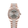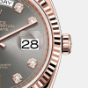 - Dial color: Slate dial with a fine sunrays and 10 Diamonds as hour markers framed in 18k Everose Gold, 2 of which are baguette-cut at 6 and 9 o’clock