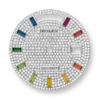 - Dial color: Diamond-paved dial with 10 baguette-cut, rainbow-coloured sapphires