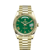 - Dial color: Green dial with a applied polished 18k Yellow Gold Roman numerals as hour markers