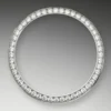Unworn Rolex Day-Date 40mm, 18k White Gold and Diamonds watch. They have a Slate Dial with index hour markers fashioned from 18k gold. Highly legible Chromalight display with long-lasting blue luminescence. Monobloc middle case, screw-down case back. Screw-down winding crown with Twinlock double waterproofness system. Scratch-resistant sapphire, Cyclops lens over the date. The date window is located at the 3 o’clock position. Day display located at the 12 o’clock position. The Fixed 18k White Gold bezel with 52 Diamonds set. The movement is mechanical self-winding, caliber 3255 with 31 jewels and 70 hours of power reserve. The 18k White Gold President bracelet of semi-circular three-piece links with concealed folding Crownclasp. The water resistance is up to 100m/330ft. The Watch comes complete with store papers and a Rolex box. Will include 3 years Store Warranty.
