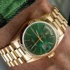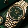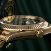 The Rolex fluted bezel is a mark of distinction. Originally, the fluting of the Oyster bezel had a functional purpose: it served to screw the bezel onto the case helping to ensure the waterproofness of the watch. It was therefore identical to the fluting on the case back, which was also screwed onto the case for waterproofness, using specific Rolex tools. Over time, the fluting became an aesthetic element, a genuine Rolex signature feature. Today the fluted bezel is a mark of distinction, in gold on this Day-Date 40.