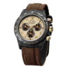 The Daytona Arabic Brown perfectly highlights the traits of its owner: exclusive and aesthetically perfect. When the “Military” series is taken into a new different level. The 18K Gold elements match with its overall style, the case is crafted in high-end carbon fiber.