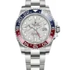 Silver-tone stainless steel case with a silver-tone stainless steel rolex jubilee bracelet. Bi-directional rotating blue and red bezel. Black dial with silver-tone hands and index hour markers. Dial Type: Analog. Luminescent hands and markers. Date display at the 3 o’clock position. Rolex Calibre 3285 automatic movement with a 70-hour power reserve. Scratch resistant sapphire crystal. Screw down crown. Solid case back. Round case shape. Case size: 40 mm. Water resistant at 100 meters / 330 feet. Functions: date, hour, minute, second, 24 hours, GMT. Luxury watch style. Watch label: Swiss Made.