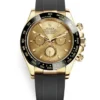 Bidirectional rotatable 24-hour graduated bezel. Two-colour green and black Cerachrom insert in ceramic, moulded numerals and graduations