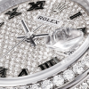 • Dial color: Diamond-paved dial set with 291 diamonds and a applied polished black Roman numerals as hour markers