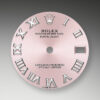 • Dial color: Pink dial with a fine sunrays and a applied polished 18k White Gold Roman numerals as hour markers