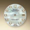 - Dial color: White mother-of-pearl dial with a fine sunrays and 10 Diamonds as hour markers framed in 18k Everose Gold