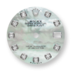 - Dial color: White mother-of-pearl dial with 10 Diamonds as hour markers framed in 18k White Gold